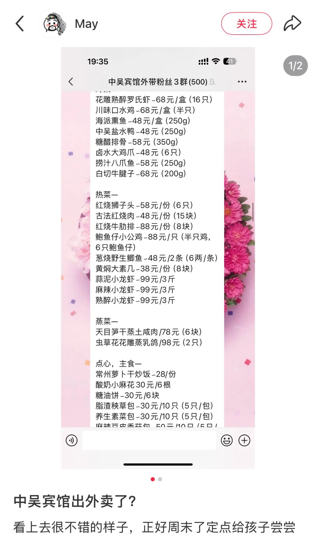 常州某頂級酒店為了鎖定客源,火速建立了粉絲羣,每天提前預告菜單,並支持外賣跑腿。