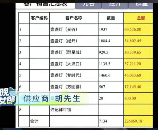 據“芒果愛晚”視頻報道,壹盞燈被曝出拖欠多家供應商貨款,金額超過千萬元人民幣。受影響的供應商包括豬肉供應商、酒水糧油供應商等,其中供應酒水糧油的胡先生透露,僅其一家就被拖欠了160多萬元。