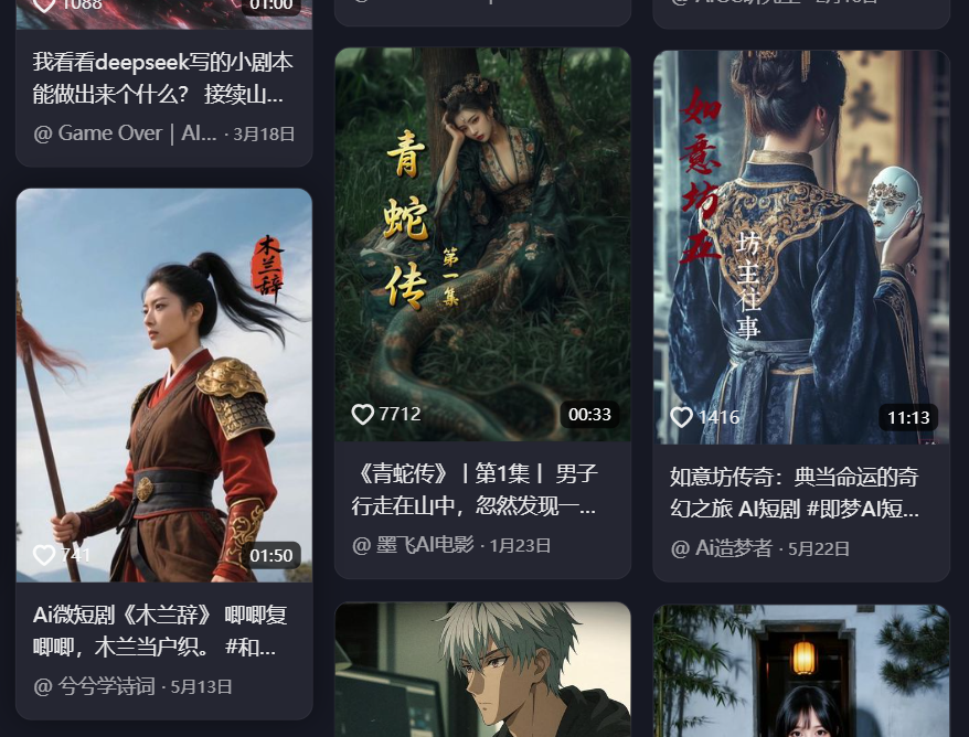 類型的靠攏與敍事格式的成熟,讓AI短劇具備了為短劇、長劇試水的測試功能。