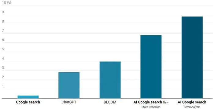 根據研究所的數據,基於ChatGPT的AI搜索的用電量幾乎是傳統谷歌搜索的10倍。