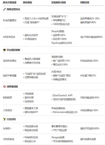 在這個過程中,技術創新、商業模式創新和規則創新將是破局的關鍵。AR虛擬試衣、AI尺碼系統、私域流量運營等技術手段的應用,將大大改善消費者的購物體驗;平台信用體系和差異化規則的建立,將促進商家的良性競爭;消費者教育和環保意識的提升,將引導更加理性的購物行為。女裝網購退貨率高企的現象,終將成為行業變革的催化劑。只有通過多方共同努力,才能重建女裝網購市場的信任基礎,實現從"退貨率"到"滿意度"的轉變,最終走向更加健康和可持續的發展道路 。