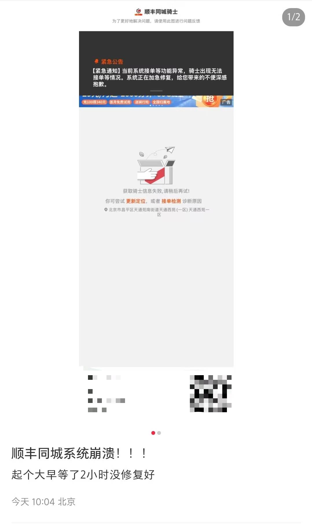 7月17日早晨,不少網友發現順豐同城的系統出現Bug,瑞幸、星巴克等一眾商家的外賣訂單無法送達,甚至出現訂單超過兩小時仍無法送達的情況。而這也反向説明順豐同城配送服務覆蓋範圍之廣。