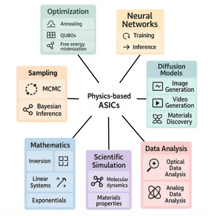 基於物理的ASIC可以加速關鍵的AI應用,例如擴散模型、採樣、優化和神經網絡推理,以及材料和分子科學模擬等傳統計算負載。最終,這一願景指向了一個異構、高度專業化的計算平台未來,它能夠克服當前的擴展瓶頸,並開啓計算能力和效率的新前沿。