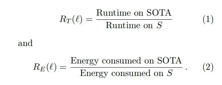 將算法ℓ納入集合L(S)的合理標準是,RT(ℓ)或RE(ℓ)中的任意一個大於1。另一方面,如果這兩個比率都小於1,則算法ℓ不被認為在硬件S上高效。