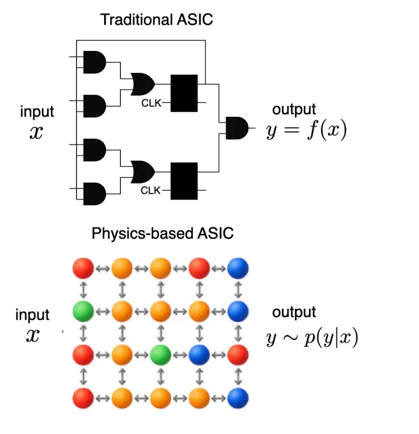 通過放寬傳統ASIC所需的約束,例如強制無狀態性、單向性、確定性和同步性,這些設備旨在作為物理過程的精確實現而運行,從而在能源效率和計算吞吐量方面獲得顯著提升。這種方法能夠實現新穎的協同設計策略,使算法需求與物理系統固有的計算原語相吻合。