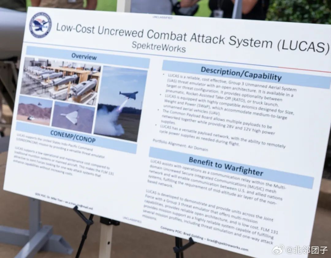 其中最“亮眼”的,莫過於是位於亞利桑那州的國防承包商Spektre Work,展出的一款被稱之為“低成本無人作戰攻擊系統”(LUCAS)的玩意兒。