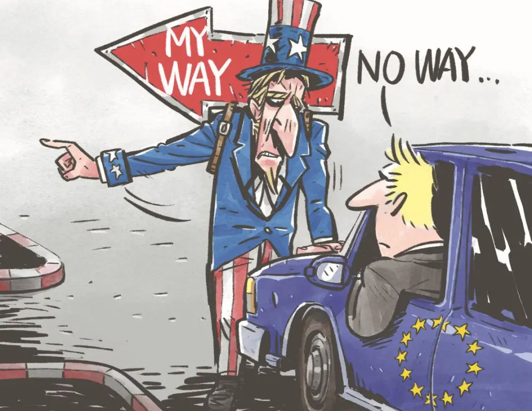 一是直接賺歐盟的錢。直接賺歐盟的錢,美國玩得很順手,威逼利誘。譬如,利用俄羅斯的威脅促使歐盟接納軍費提升至GDP5%的水平,但美國自己卻可以是個例外,如此俄烏戰爭就可以成為美國“抽血”歐盟的重要方式,每天增加的數千億至上萬億美元的軍費,其中很大一部分資金會用於購買美國的武器,這會讓美國大發橫財。另外,美國還要對歐盟輸美商品徵收高額關税,這也是美國抽血歐盟的另外一種方式。