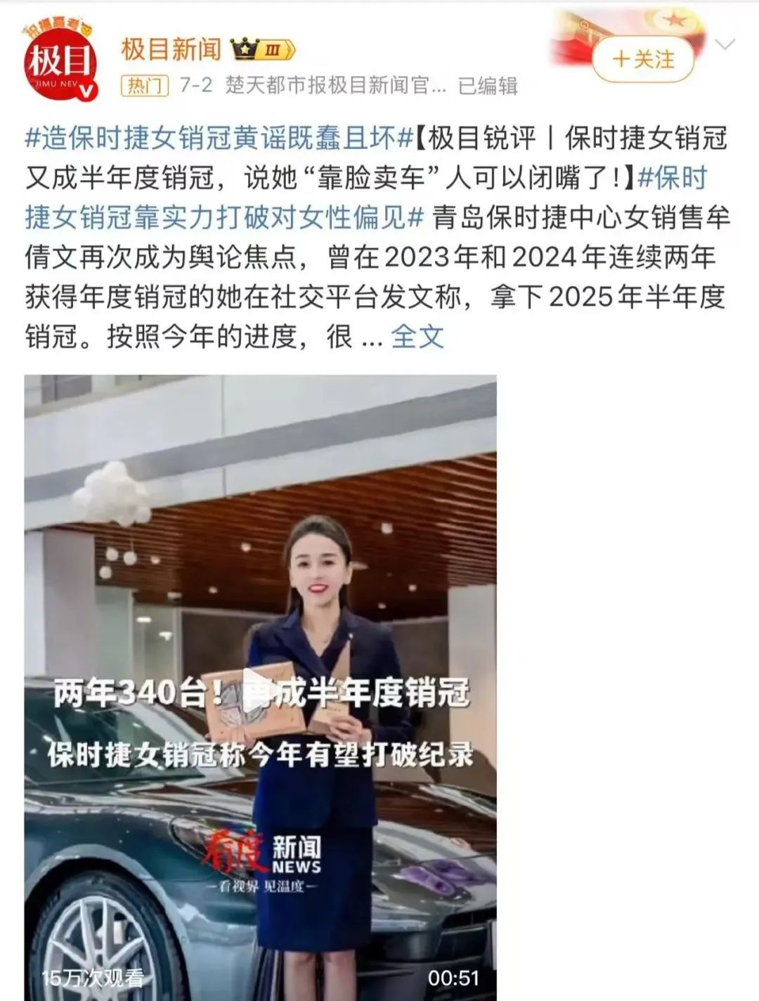 突出業績和正當努力一定不能共存,所以一年賣出170台保時捷的女銷冠牟倩文,一定是靠陪睡賣車……