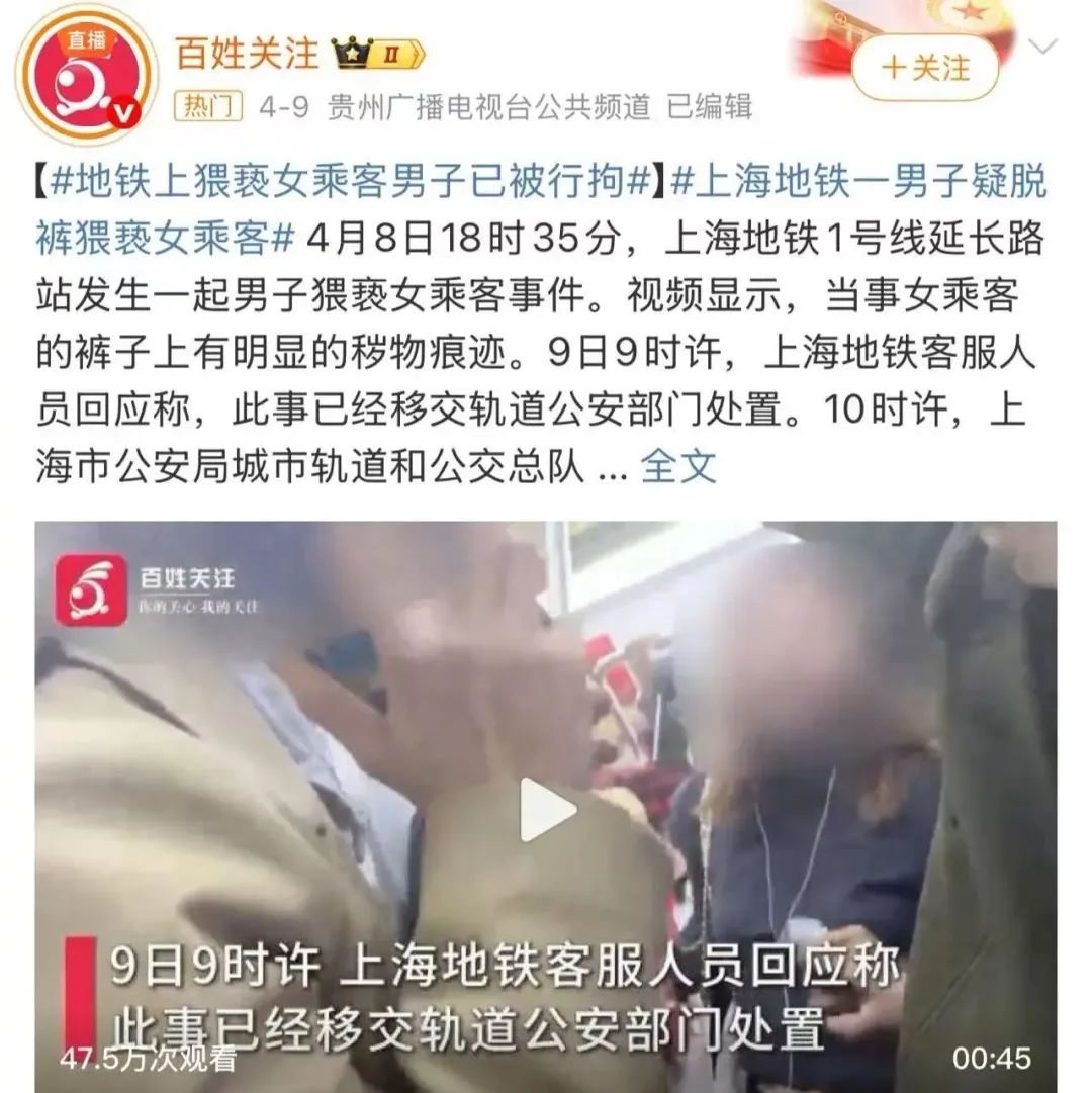 今年4月份,在上海地鐵一號線上,41歲的姚某對一名女乘客實施了猥褻行為,隨後謠言四起,説兩人相識,是事先約好。警方在兩天內迅速抓捕猥褻者和造謠者,但惡意還是沒有消散。