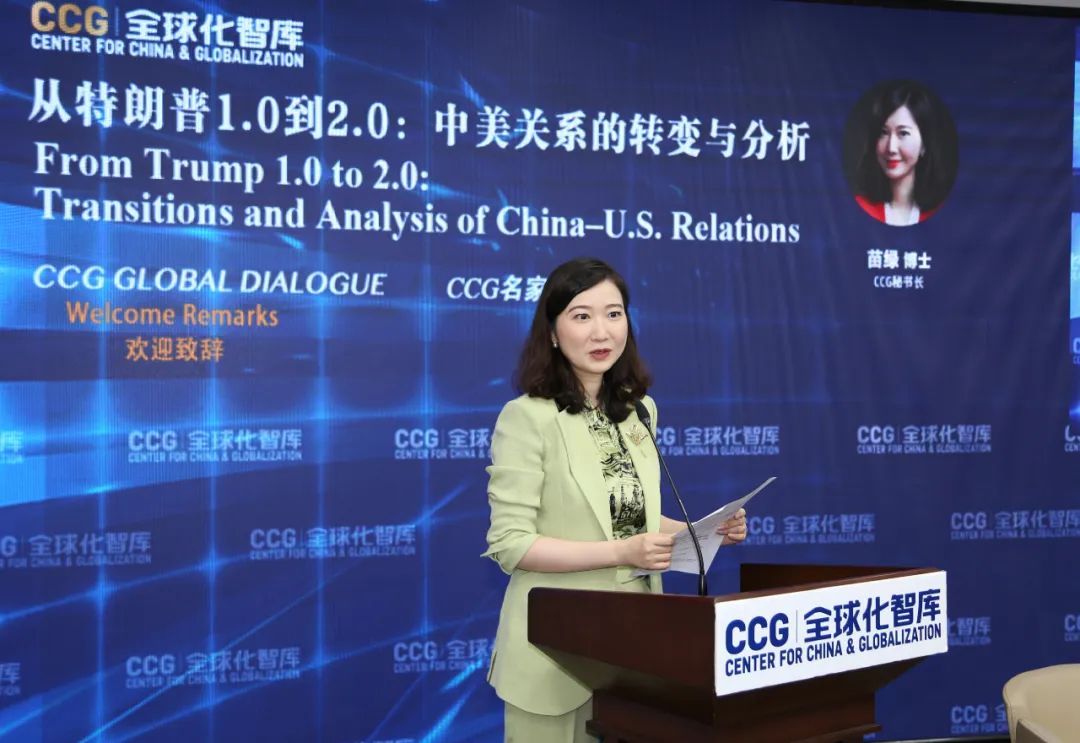 會議伊始,CCG秘書長苗綠代表智庫對趙穗生教授再次參與CCG“全球名家對話”系列活動表示熱烈歡迎,並介紹其在中美關係研究領域的卓越成就與豐富履歷。她指出,當前中美關係正處於關鍵轉折期,本場以“特朗普1.0到2.0”為主題的對話備受關注,期待趙穗生教授與王輝耀理事長深入交流,共同探討未來中美關係的演變路徑。