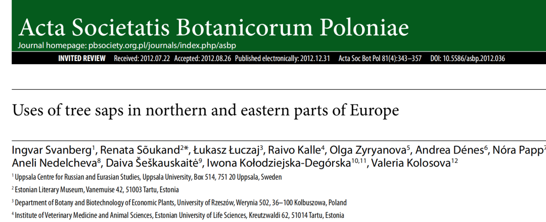 [3]Svanberg, Ingvar, et al. “Uses of tree saps in northern and eastern parts of Europe.” Acta Societatis Botanicorum Poloniae 81.4 (2012): 343-357.