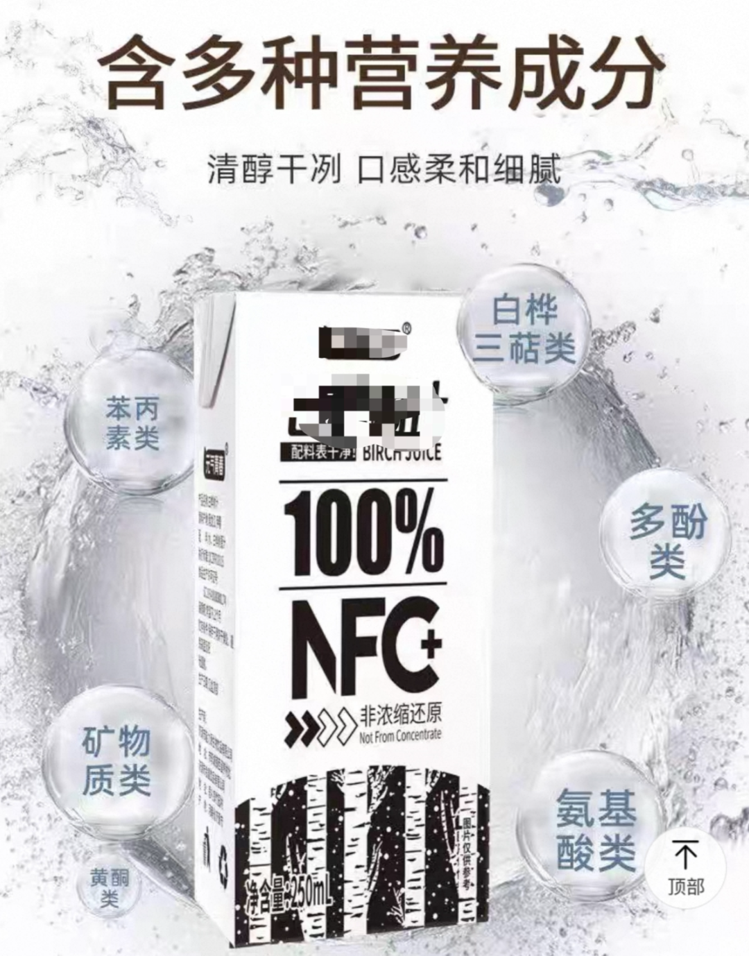 ▲圖:某品牌樺樹汁的網店宣傳頁。樺樹汁中的確含有多種營養成分,但含量都很低,絕對稱不上“豐富”。