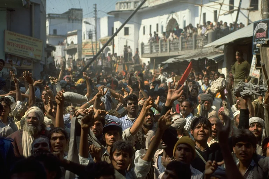 1992年巴布裏清真寺被拆毀時,印度教暴徒在街頭騷亂。圖源:《大篷車》