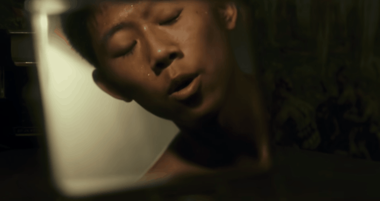 比如馬小軍在派出所回來,對着鏡子“表演”的那一幕。