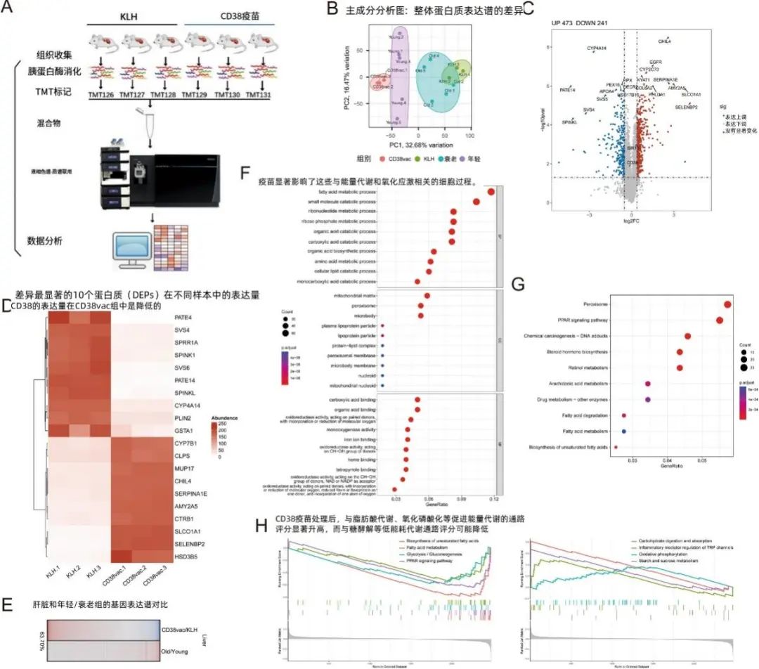 圖注:CD38肽疫苗改變了肝臟蛋白質組
