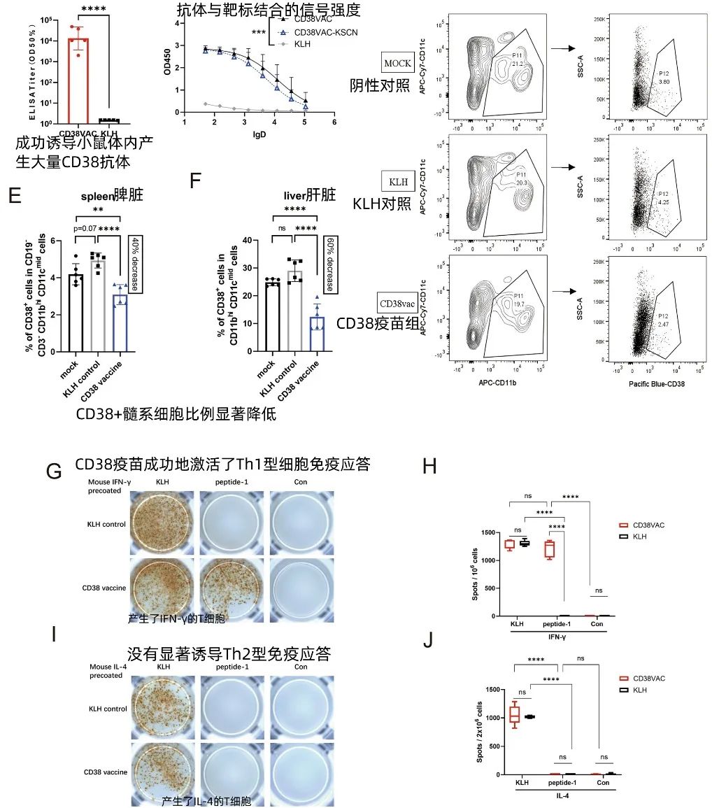 圖注:接種CD38疫苗減少了特定高表達CD38的髓系細胞的數量,並且特定激活了Th1型免疫