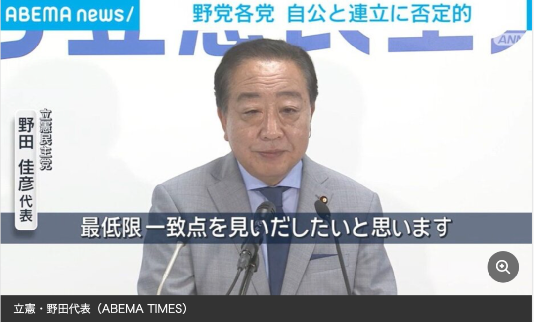 自民黨外,在野黨虎視眈眈。立憲民主黨黨首野田佳彥公開發聲,各大在野黨很有可能會聯合起來,向石破茂內閣提出不信任案,要求其下台。