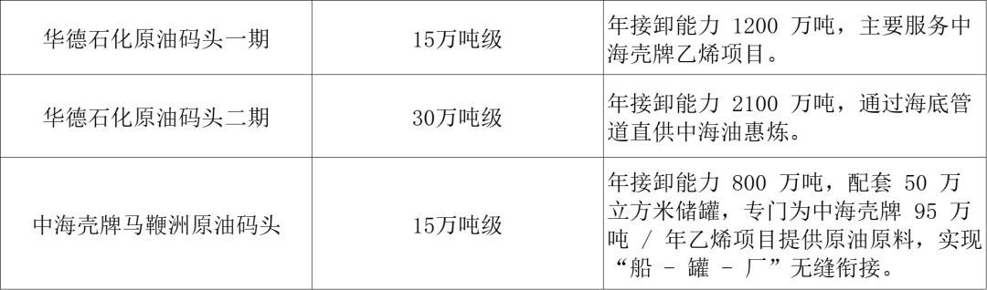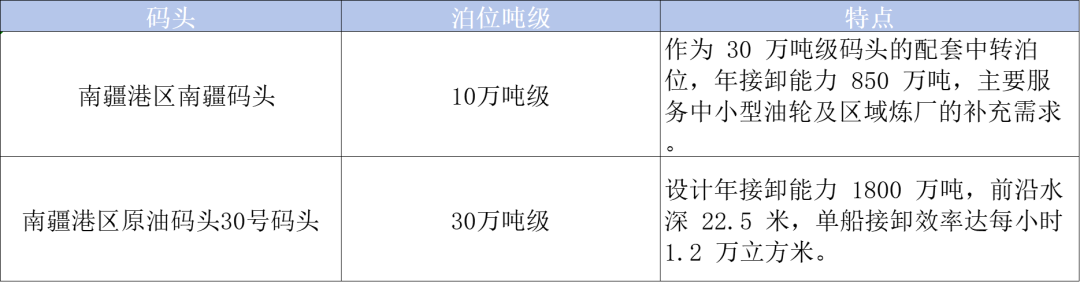 泉州港原油碼頭是國家重點石化項目 —— 福建聯合石化1200萬噸/年煉化項目和中化泉州石化1500萬噸/年煉化項目的重要原料供應地,年進口原油吞吐量約佔福建省80%以上。