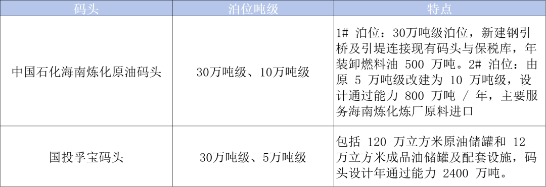 湛江港處於中石化、中石油、中海油三大石油集團海岸運輸的交匯點,是國家級油品轉運中心、華南地區大型油品集散基地之一,湛江港的原油碼頭主要由湛江港石化碼頭有限責任公司運營,擁有13座油品及化工品裝卸泊位(其中30萬噸級泊位2座)。