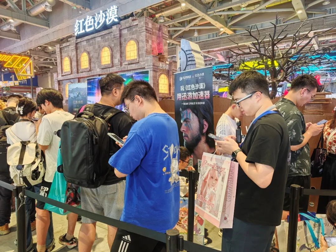 到了BW第三天上午,《紅色沙漠》展台已經排起了長隊。有人單純是為了良心的試玩獎品(雙肩包+手持風扇),也有人是在朋友的力薦之下特意前來體驗。