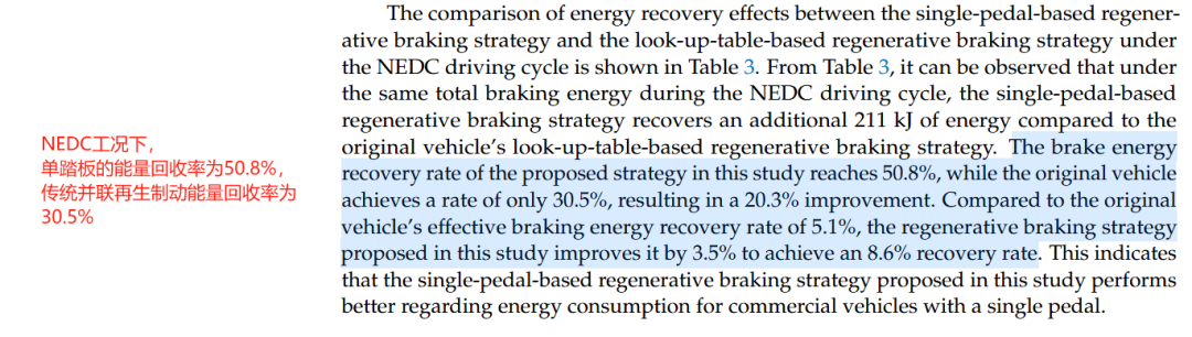根據河南科技大學李哲等人的研究,在 NEDC 工況下,單踏板模式的回收效率提升了 20% 多。