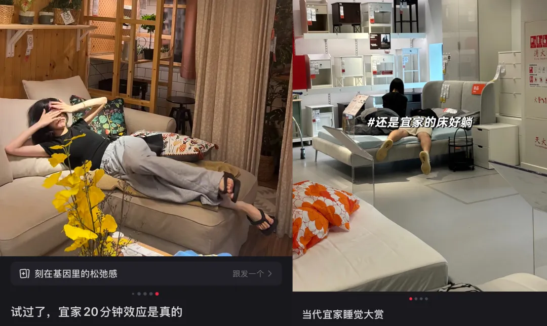 騎車下班的打工人只要路過,上到二樓牀品區那是倒頭就睡。對睡眠質量有要求的朋友還自帶個眼罩,一點也沒拿它當外牀。