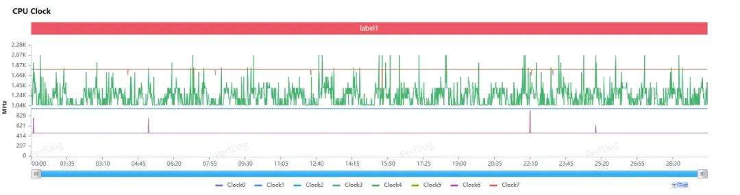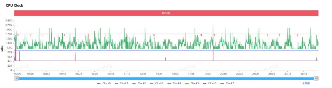 我們又拉了一下測試中的 CPU 頻率,看看 CPU 有沒有在開風扇的情況下做更激進的調度 —— 結果是並沒有。
