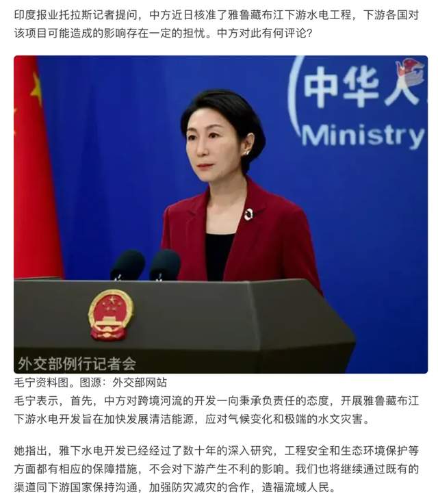 中方外交部發言人曾多次回應相關問題,明確指出開發該電站,主要是為了發展清潔能源,應對氣候變化和極端的水文災害。同時指出,該項目有充分的工程安全和生態保護等措施,不會對下游產生不利影響。