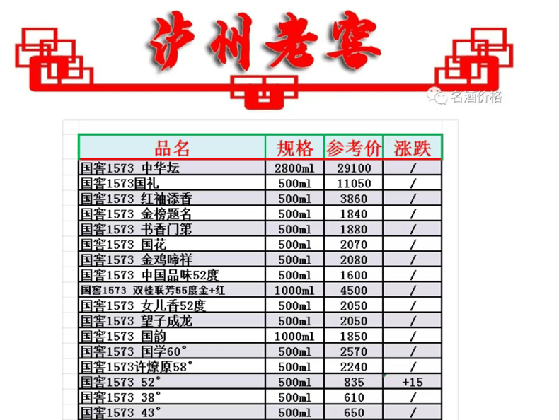 7月16日國窖1573價格,圖源:公眾號名酒價格