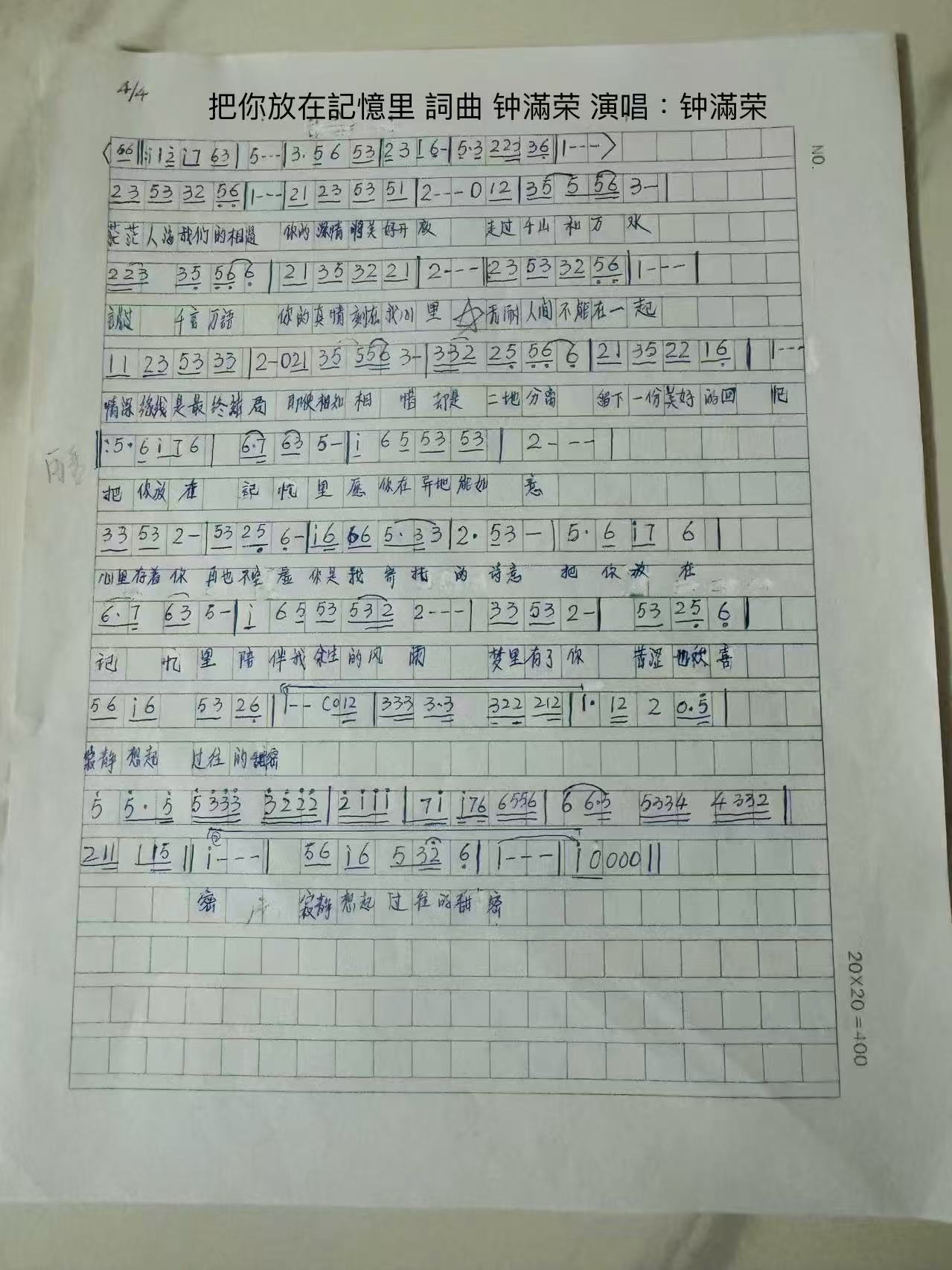 流行情歌歌曲《把你放在記憶裏》歌曲詞譜: