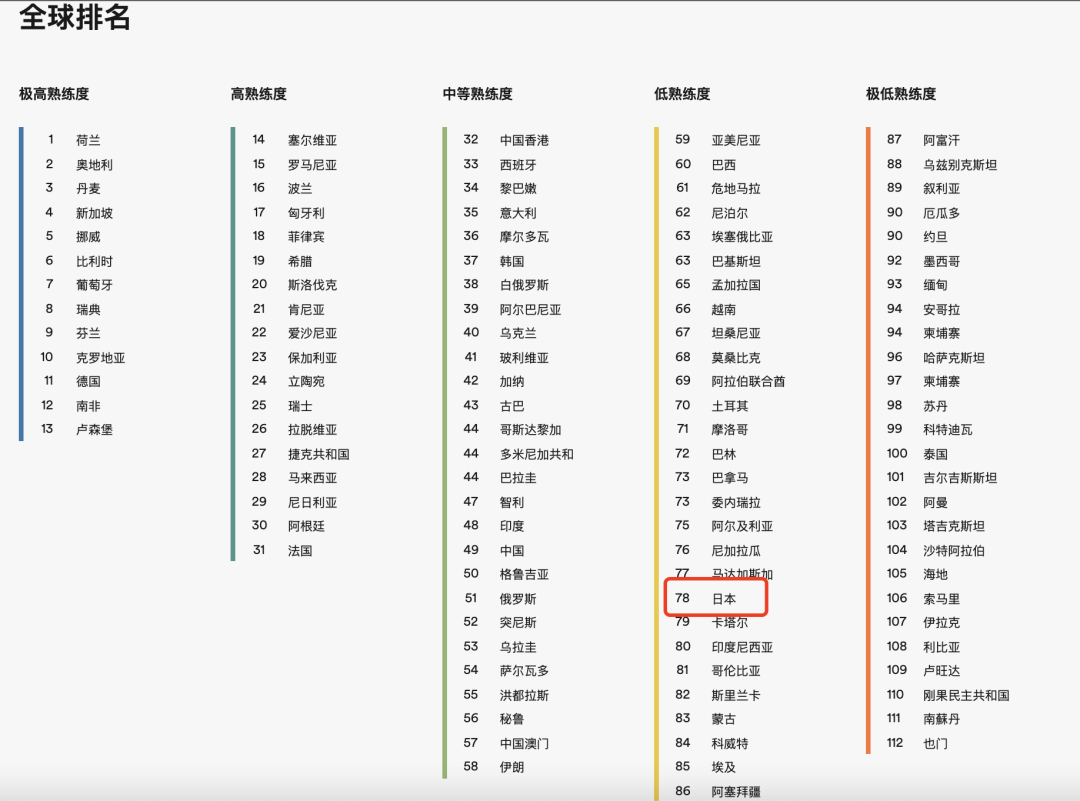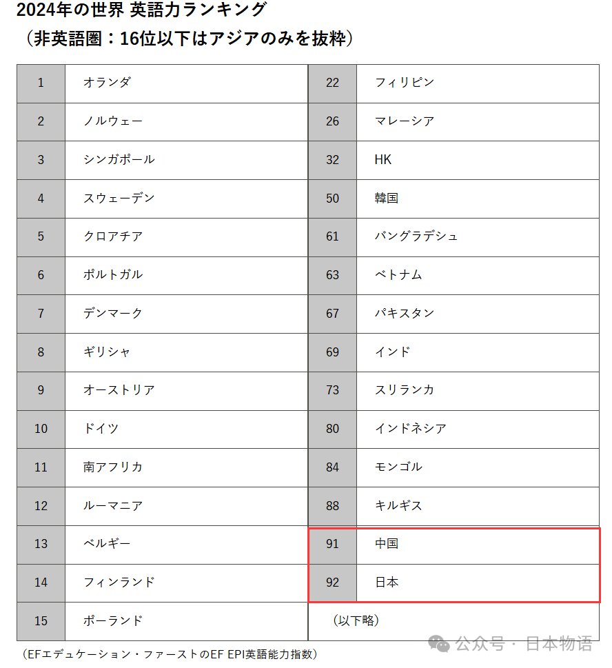 日本在全球英語能力排名中處於相對末尾,根據2021年英孚英語熟練度指數,日本排在第78位,甚至低於越南和尼泊爾。