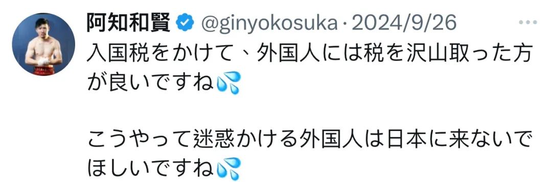 “希望徵收入境税,希望向外國人徵收更多税,更希望這種惹是生非的外國人不要來日本。”