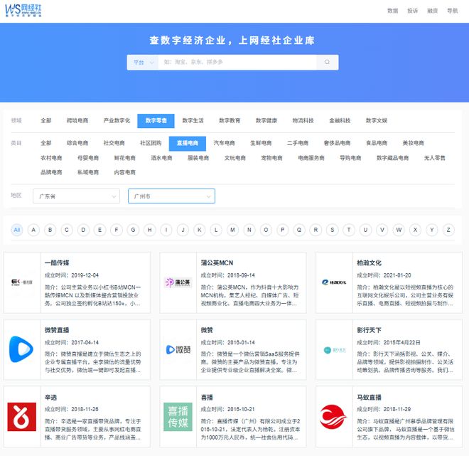 網經社企業庫收錄的廣州市共有直播電商企業9家,包括一酷傳媒、蒲公英MCN、柏瀚文化、微贊直播、微贊、影行天下、辛選、喜播、馬蟻直播。