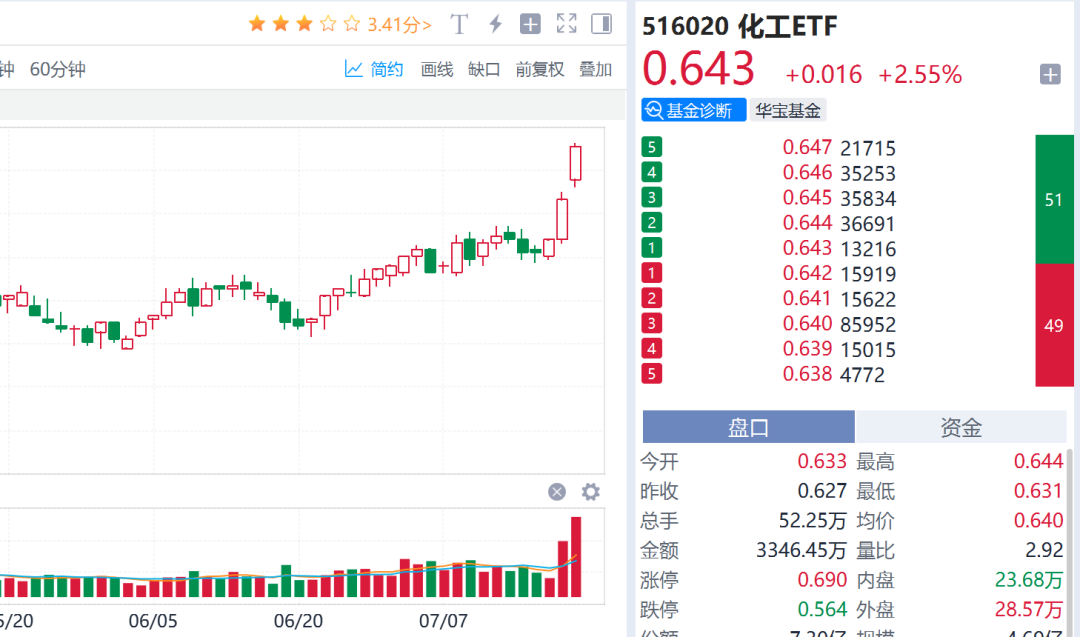 化工ETF(516020)近三個交易日實現三連陽,同時成交額也放量大增。