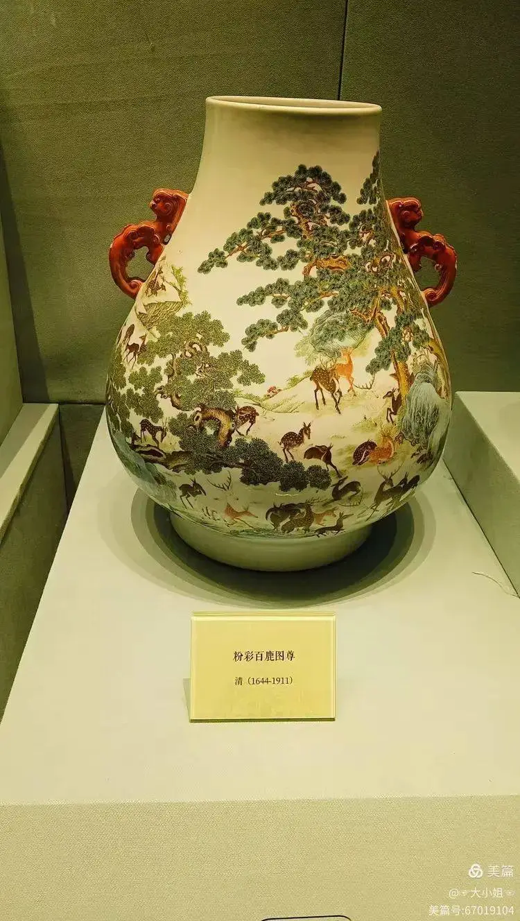 作為乾隆時期的典型器,它綜合了康熙與雍正兩朝的制瓷工藝,充分體現了乾隆官窯精品的時代風貌和技法水平。在乾隆六十大壽之前燒製出盛極一時的百鹿尊,到乾隆六十壽誕,羣臣祝壽,乾隆諭旨只允許三品以上官員才能進宮拜請“百鹿尊”,足見其地位尊貴。鹿與“祿”諧音,寓意官運亨通、福祿雙全。同時,鹿在古代被視為神物,被認為能給人們帶來吉祥幸福和長壽。