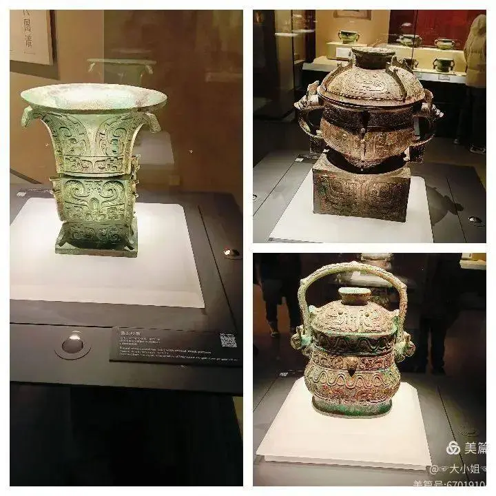 獸面紋尊、伯旅父簋、鳳鳥紋提樑卣,三件器物各具特色,紋飾繁複而莊重。它們靜靜地陳列在展櫃中,彷彿在訴説着西周時期的禮制文化與藝術成就。我站在展櫃前,久久不願離去,彷彿能聽見歷史在低聲細語,講述着那個遙遠而輝煌的時代。