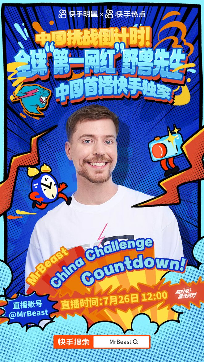 近日,快手宣佈海外頂流博主野獸先生(MrBeast)將於7月26日在平台開啓中國直播首秀,這一消息引發廣泛關注。