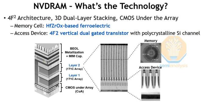 美光公司的 NVDRAM(NV 代表非易失性)在2023 年 IEDM上首次亮相 18 個月後再次浮出水面。這是他們採用 4F2 架構、釕字線和 CMOS 底層陣列的鐵電 (HZO) DRAM 。如果你想用所有最新技術來製造一塊昂貴的內存,這可能是你最想嘗試的方法。