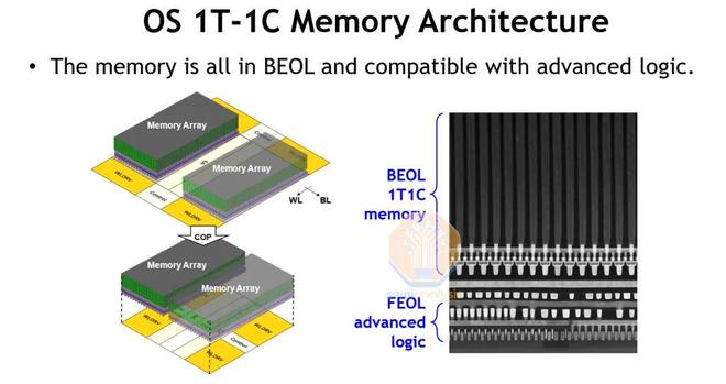 由於SRAM位密度不再隨着新工藝節點的提升而提升,台積電研發部門試圖重振eDRAM,以提高芯片緩存密度。嵌入式DRAM上一次亮相是在IBM基於GlobalFoundries 14nm工藝的z15處理器中。其主要創新之處在於,台積電能夠在BEOL金屬層內製造整個存儲器陣列,並且DRAM晶體管和電容器的形成方案在BEOL工藝流程的400攝氏度極限範圍內。這釋放了前端晶體管和底層金屬層,用於功能邏輯塊。隨着現代處理器設計不斷提高SRAM與邏輯面積的比例,能夠在主動邏輯之上堆疊基於DRAM的最後一級緩存,將代表可擴展性和設計方面的突破。