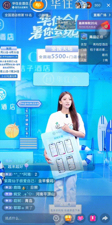 可查數據顯示,其官方直播間去年峯值時每天直播時長就超20小時,當日支付GMV還曾突破過300萬。也是因為有這樣成績,才讓華住今年暑期把重注押在抖音直播間。