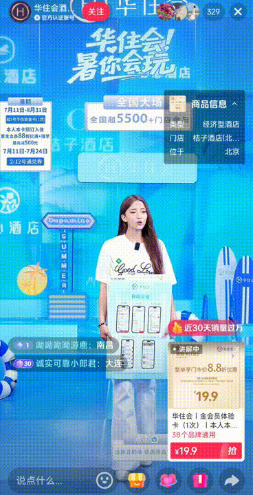 可查數據顯示,其官方直播間去年峯值時每天直播時長就超20小時,當日支付GMV還曾突破過300萬。也是因為有這樣成績,才讓華住今年暑期把重注押在抖音直播間。