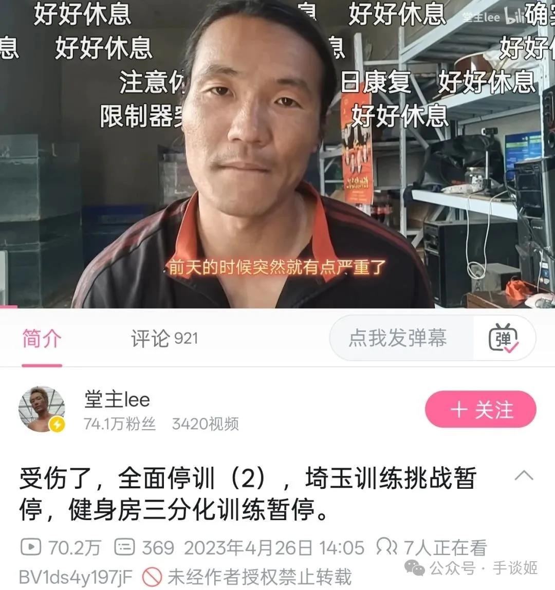 堂主lee並未刻意追求肌肉,但相比起2021年,他的身材有了明顯改善,精氣神也好了許多,經常開心笑着與粉絲打招呼。