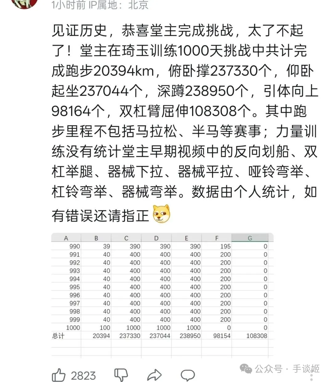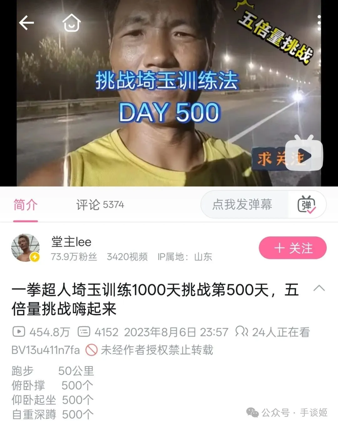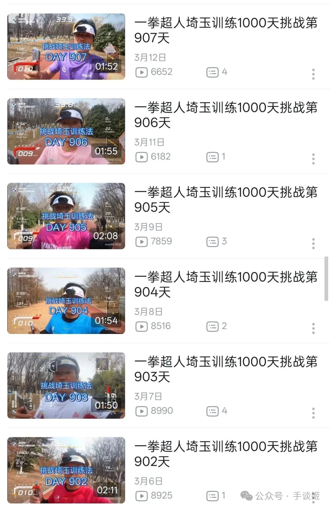 未曾想,他真把每一次訓練都記錄了下來。他的1000期視頻絕大多數時候視頻播放都不高,畢竟內容幾乎一樣,就是跑步隨後仰卧起坐等。
