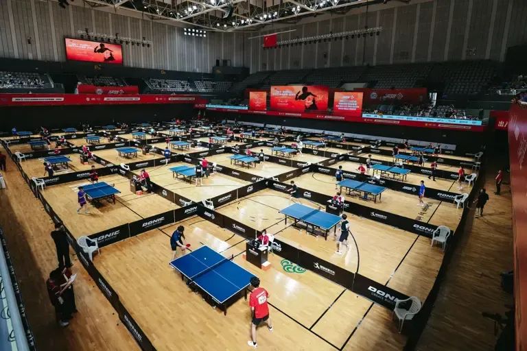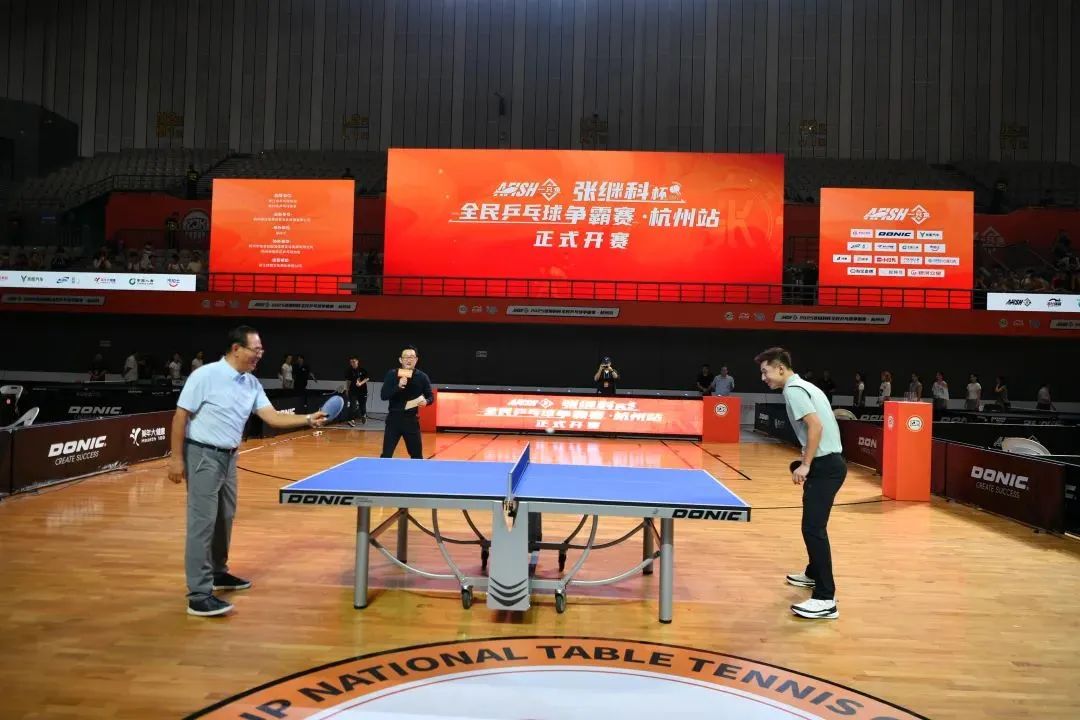 杭州臨安體育文化會展中心,30張乒乓球枱一字排開,清脆的擊球聲此起彼伏。上至68歲的銀髮老者、小到5歲的稚嫩孩童,來自全國各地的業餘高手揮汗如雨。這並非一場職業賽事,而是名為“張繼科杯全民乒乓球爭霸賽”(下文簡稱“張繼科杯”)的草根盛宴。