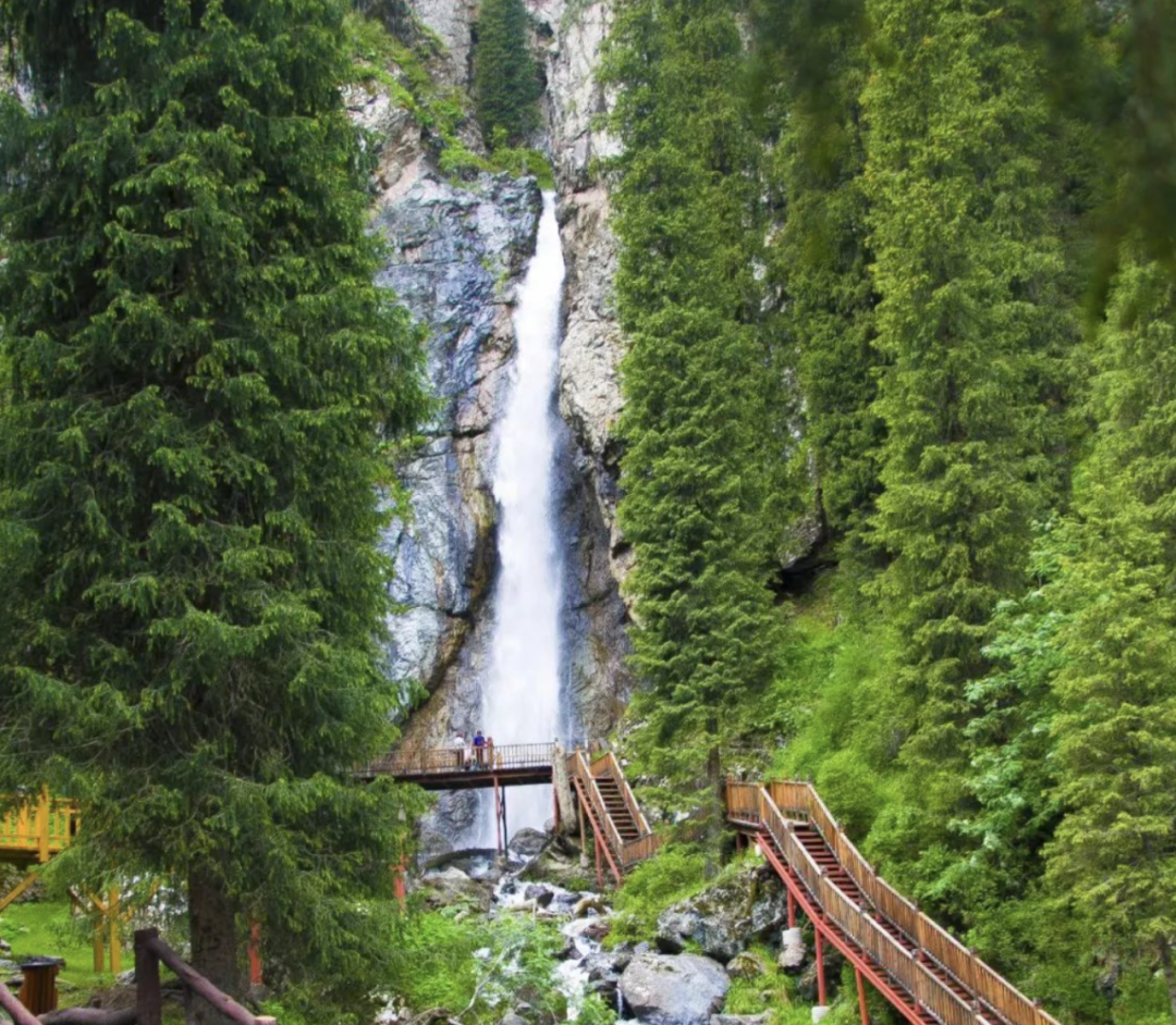 它距離市中心不到50公里,卻像是被天山神靈親手雕刻出來的秘境。峽谷蜿蜒曲折,層層疊疊的松林和雪嶺雲杉把這裏裝點得安靜而神秘。
