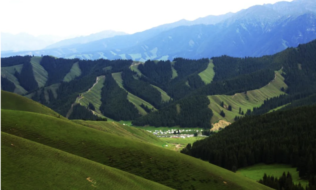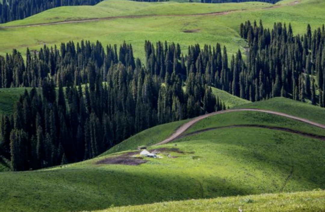 烏拉斯台位於雲杉林和草甸帶的交界,北面是綿延無際的草原,南面是原始雲杉林,鬱郁蒼蒼。
