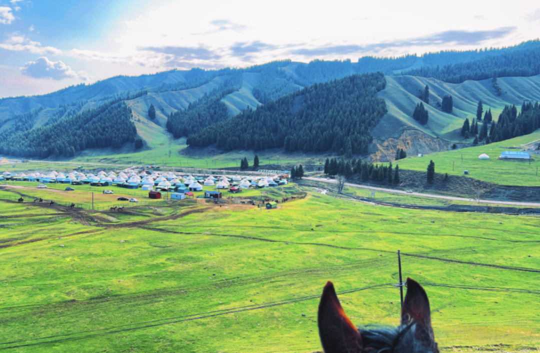 比如照壁山的晨光,每到春夏,草場綠得像被刷過一樣,馬羣在遠處安靜吃草,陽光照在山頭,時間似乎慢了一半。