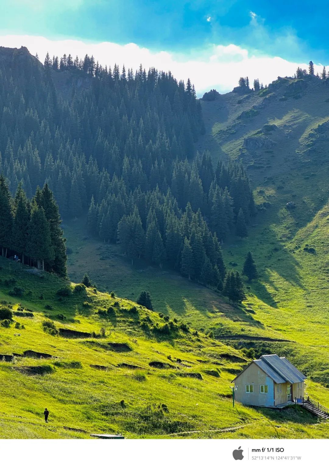 如果想停下來住一晚,南山也有不少温馨的民宿,比如板房溝的山谷小木屋、廟爾溝的林間小院,推開窗就是雪山和樹林,抬頭就是銀河與星河。