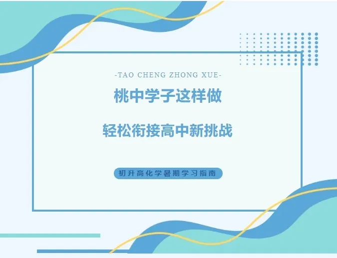初中的積累是基石,高中的探索是新篇。這個暑假,不必焦慮,不必盲從,按照這份指南穩步前行,既能鞏固舊知,又能初探新知。願每一位桃中學子都能在假期裏找到屬於自己的學習節奏,帶着對化學的好奇與熱情,以更從容的姿態迎接高中課堂的挑戰。我們在桃城中學高中部,期待看到你們用知識武裝自己,在新的賽道上綻放更耀眼的光芒!加油,未來的化學小達人!