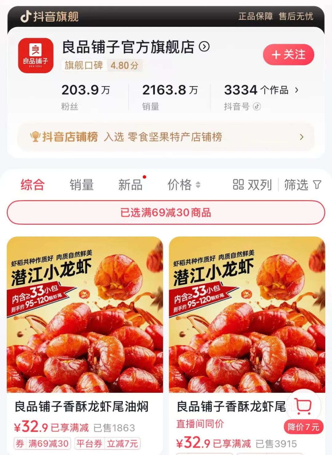 如今,點開良品鋪子的直播間或線上店鋪,不僅可以看到小龍蝦、鹹蛋,還有艾灸頸貼、眼罩等等。